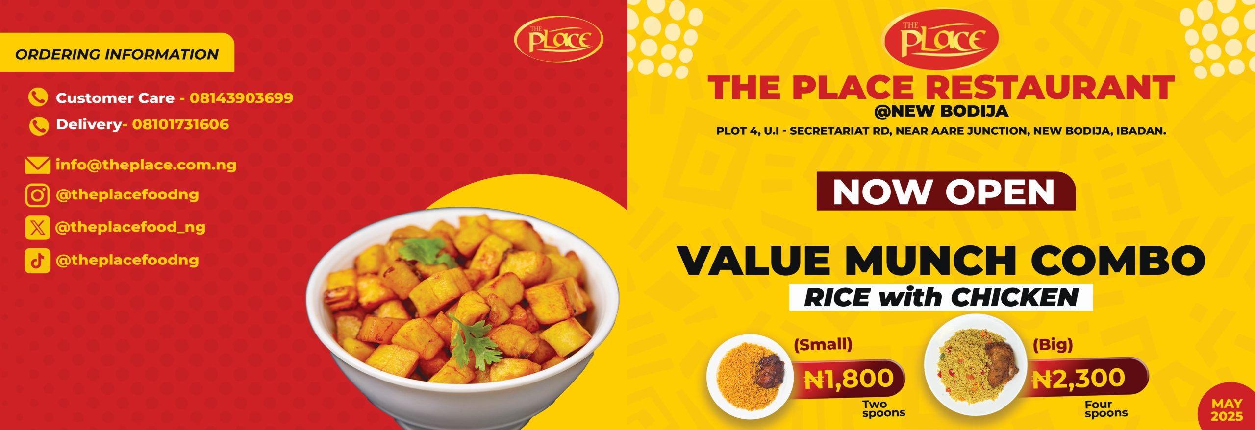 Residents of Ibadan are invited to visit the new restaurant and experience the unbeatable taste and quality that have made The Place a leader in Nigeria’s food service industry.